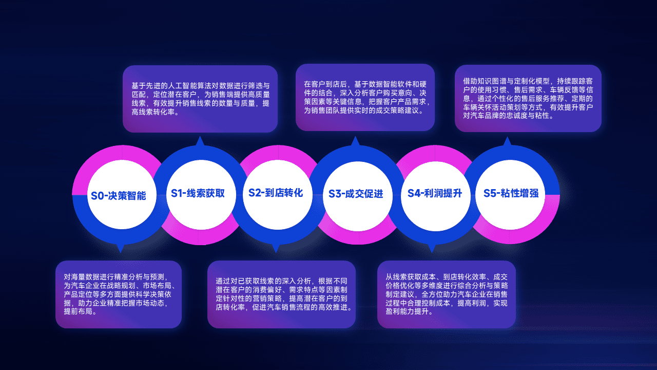 通过拓宽潜在客户来源、、、、优化线索分配并提高到店转化率,,,以增强销售效率。。。同时,,,,利用线索数据不断优化分析模型,,有效提升转化率,,,扩大营销影响力。。。